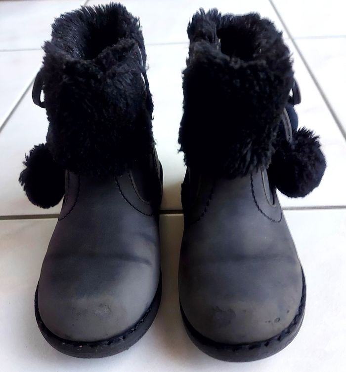Je vends cette paire de bottines noires avec pompons pour enfant de la marque Mini girls.