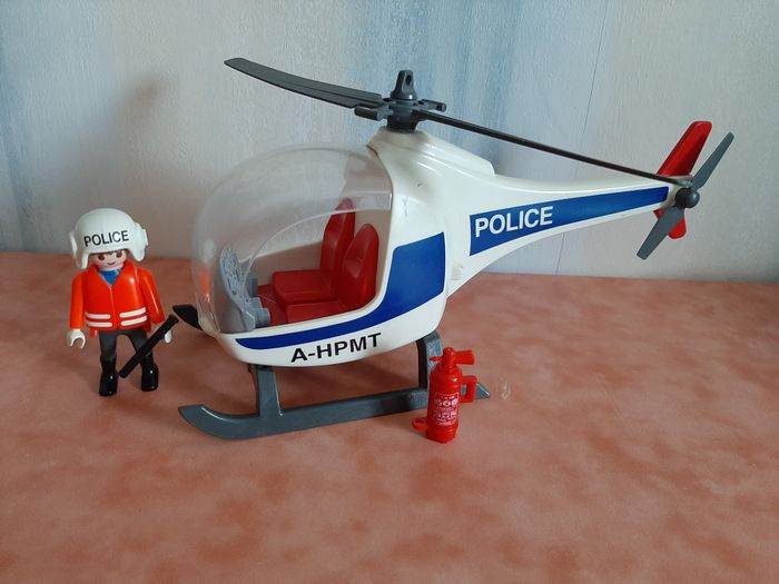 #Playmobil_Nathg2210 HÉLICOPTÈRE DE POLICE "PLAYMOBIL" - Réf.3908 - n°72 Hélicoptère de police + Policier avec casque et arme + Extincteur. Article d’occasion en très bon état – Nettoyé et désinfecté pour la vente - Pas de boite. Possibilité d'envoyer d'autres photos sur simple demande. Maison non-fumeur - Sans animaux. Réduction lot activée. Allez voir mes autres ventes, je vide les placards. Beaucoup de vêtements de marque et beaucoup de jouets. Remise en mains propres ou possibilité d'envoi au tarif en vigueur à votre charge. Retour Refusé. Pour tout renseignement, n'hésitez pas à me contacter, je répondrai volontiers à vos questions. Réponse Assurée. Pour Consulter mes autres annonces tapez Nathg2210.