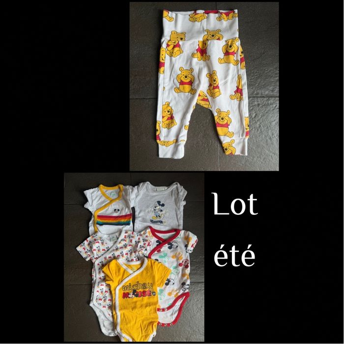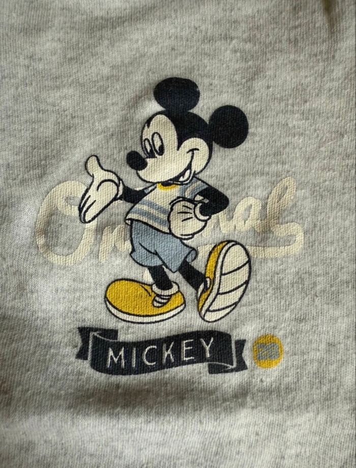 5 bodies à manches courtes (4 en cache cœur et 1 qui s’enfile par la tête) à l’effigie de Mickey