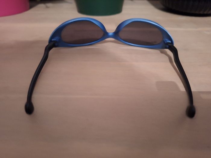 Lunettes de soleil bleue et noire pour enfant/ado 8/14 ans, portées mais en bon état quelques micro rayures sans gêne pour la vision