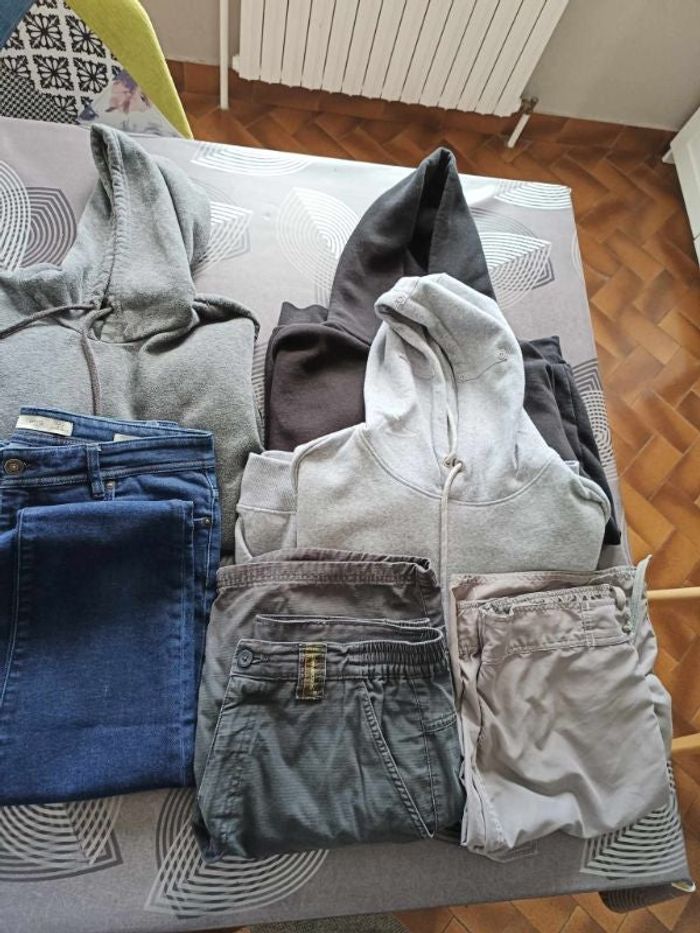 - un sweat gris foncé a capuche TL complices TBE - sweat noir capuche TL FSBN TBE - un sweat gris clair avec capuches et poches fermées TL genetic apparel TBE - un jean skinny fit MNG man T42eur bon état - un short cargo TL solgnac gris foncé - un short de bain TL #cath85hommes