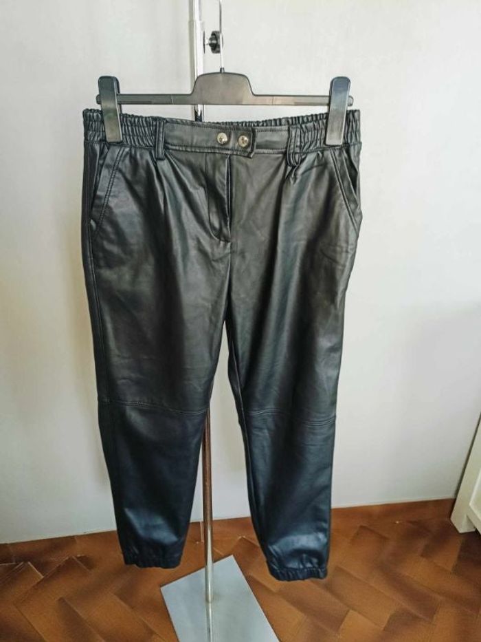 pantalon simili cuir taille 44/46 noir taille et chevilles élastiqués poches étiquette composition coupée mais finalement jamais porté #cath85taille44 #cath85taille46