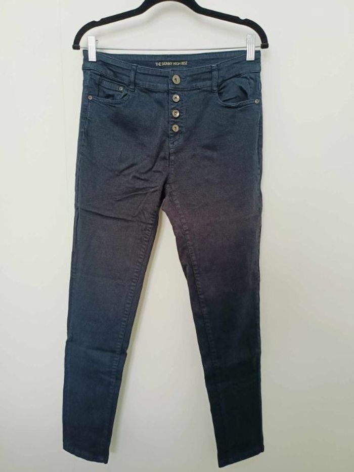 jean skinny bleu marine (tire sur le noir) taille 42 taille a plat 40 étirable a 45cm longueur 101cm très bon état je n'ai pas eu le temps d'en profiter #cath85taille42