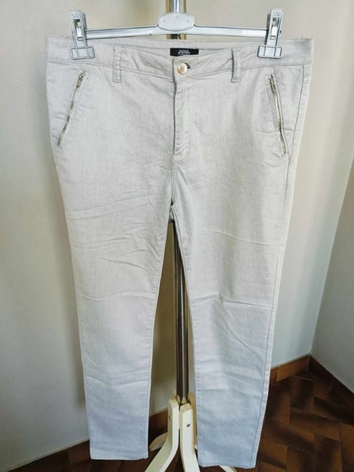 pantalon nina kalio gris/argent mais discret taille 42 mais il taille grand taille a plat 45cm à 52cm longueur 106cm extensible #cath85taille42/44 #cath85taille44 #cath85taille46