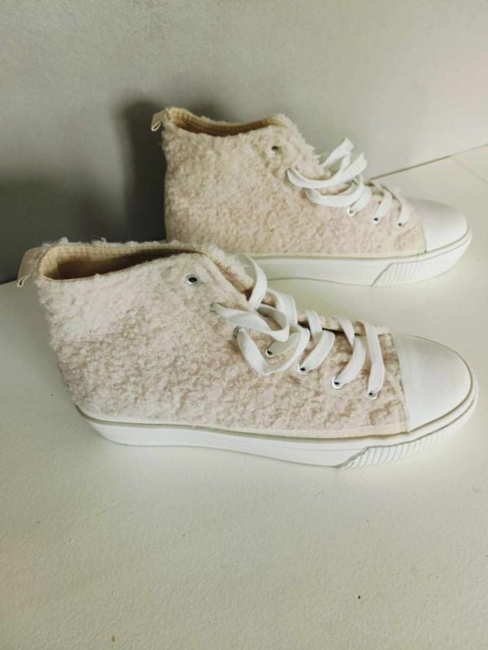 chaussures montantes petite plateforme matiere moumoute (style converses) pointure 41 jamais portées beige #cath85P41