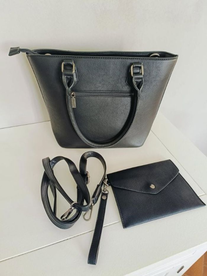 sac noir nombreux rangements pochette et bandouliere jamais servi je m'en sépare a contre coeur cause santé je ne peux pas l utilisé porté main, épaules ou bandouliere au choix 2 compartiments séparé par une grande pochette centrale zippée une pochette zippée et 2 pochettes (téléphone et autres) extérieur 1 pochette zippée sur chaque face le sac se ferme par une fermeture eclair pochette plate a pression (pour documents ou autres) hauteur 26cm largeur (mesurer sur le haut) 37cm profondeur environ 12cm #cath85maroquinerie #cath85divers