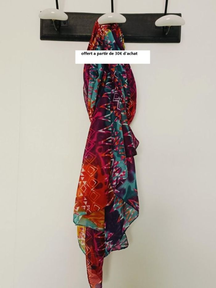 foulard état neuf 5e ou offert a partir de 30€ d'achat je ne sais plus la marque l 'étiquette est coupée longueur 1m90 (environ mon metre faisant qu'1m50 j'ai du mesurer en 2x) largeur 67.5cm
