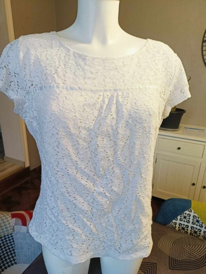 haut phildar dentelle (+ doublure) dos a bouton déco (ne s'ouvrent pas) taille 42 buton de rechange cousu sur l'étiquette tissus exterieur 74%coton et 26% polyamide doublure 98% polyester et 2% élasthanne désolée le temps ne se prete pas aux photos mauvaise luminosité ce qui gache le rendu #cath85taille42