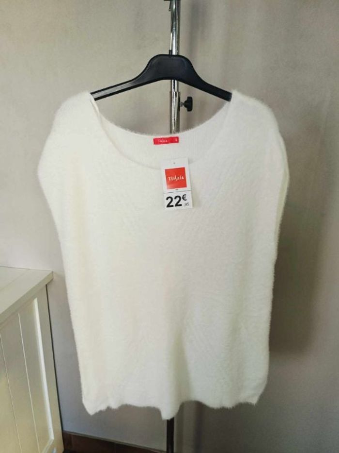 pull sans manches taille 44 blanc neuf étiqueté 100% polyamide très doux #cath85taille42/44 #cath85taille44