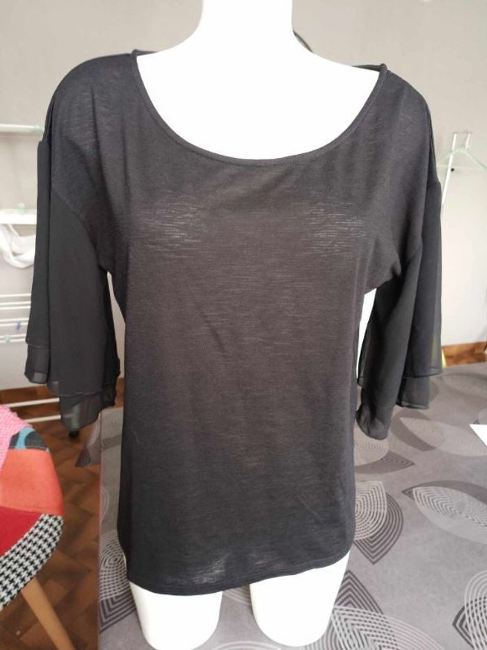 haut noir je ne me souviens pas la marque plus d'étiquette correspond a 42/44 manches voiles étiquette composition taille coupée et il n 'y a pas ou plus d'étiquette marque #cath85taille42 #cath85taille42/44 #cath85taille44