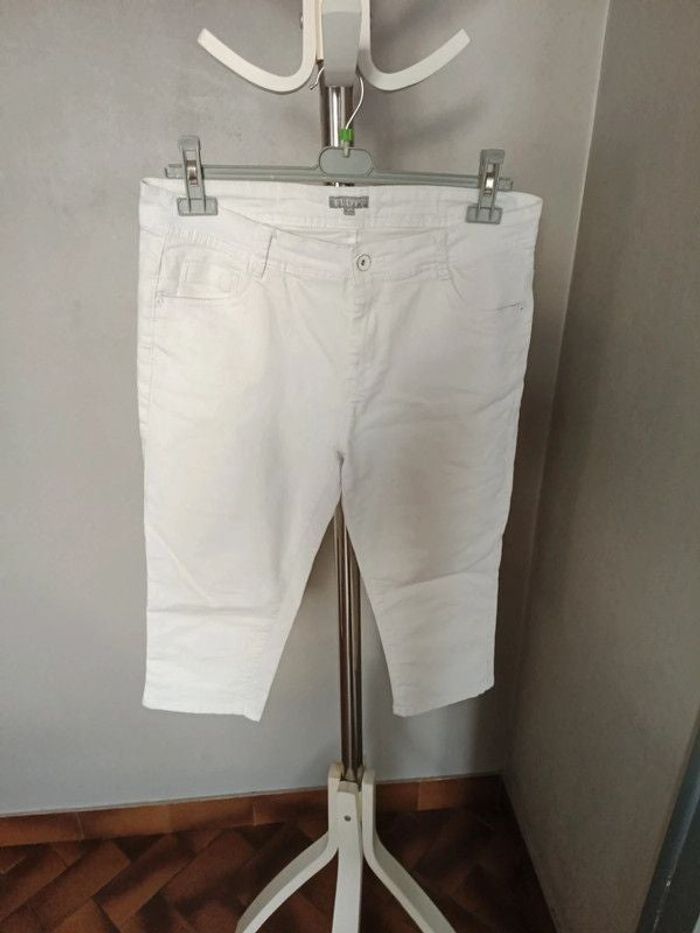 pantacourt t42 eldys blanc coton élasthanne taille a plat 43.5cm extensible longueur 71 #cath85taille42