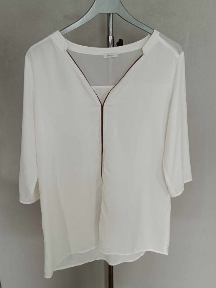 tunique blanche phildar taille 42 liseret marron #cath85taille42