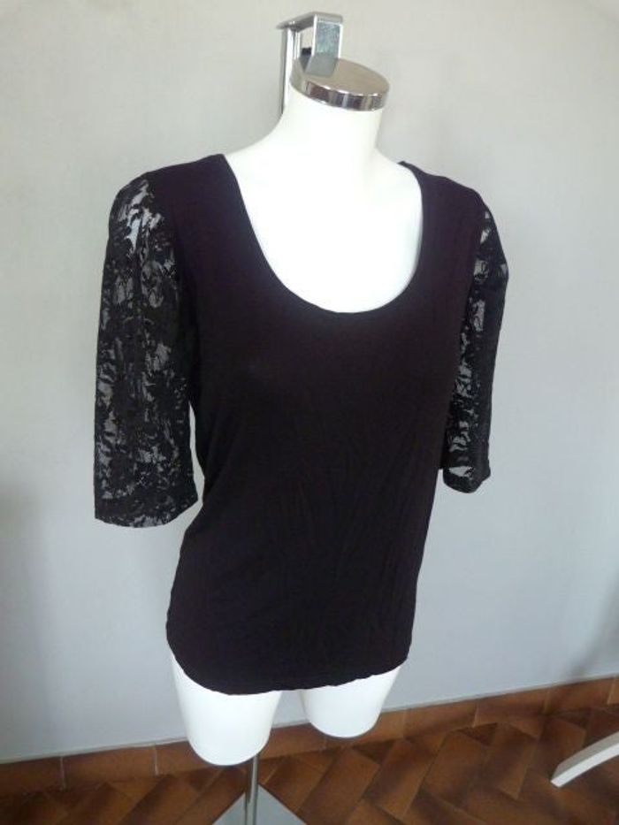 haut noir manches courtes dentelles taille L #cath85tailleL