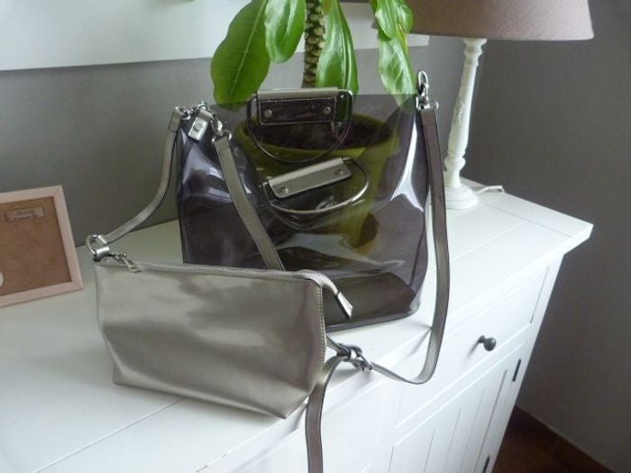 Sac transparent gris/noir et argent marque adopt' Pochette amovible argentée Poignées porté main Bandoulieèe réglable et amovible Utilisé juste 1 apres après midi #cath85maroquinerie