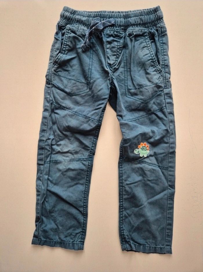 👦 Pantalon regular fit Âge : 4 ans / 98-107 cm Marque : Kiabi État : trou caché avec un thermocollant dinosaure 🦖
