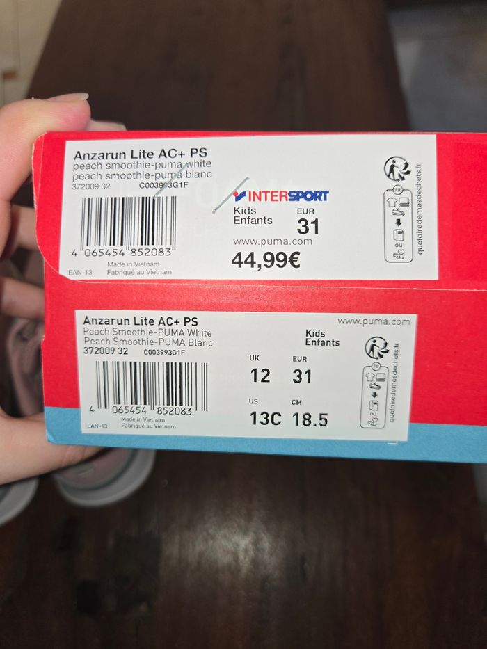 Basket rose puma utilisées par ma fille pour athlétisme taille 31 Vendues avec la boite d'origine