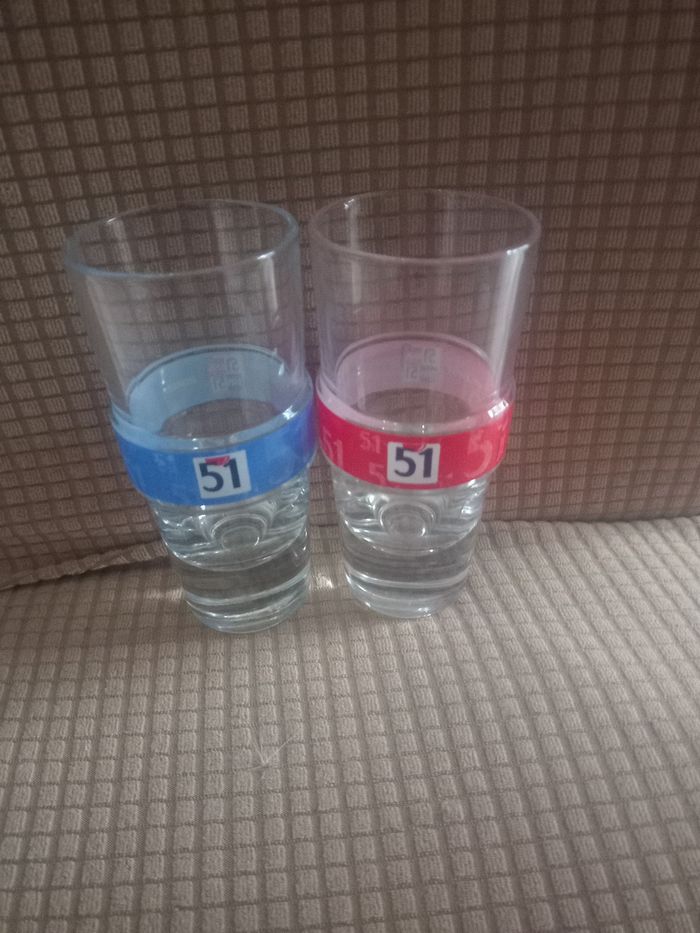 Lot de 2 verres pastis 51 un bleu et un rouge