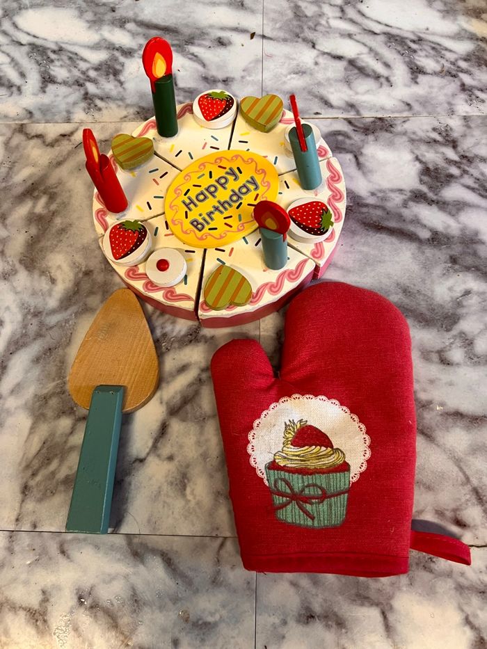 Gâteau d’anniversaire en bois à découper Peinture un peu abîmée