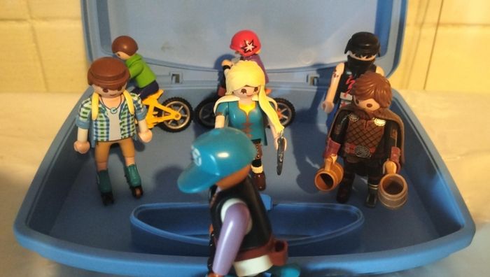 valisette remplie de figurines Playmobil. - Type de produit : Figurines - Marque : Playmobil - Composition du lot : 7 figurines, 1 valise - Âge recommandé : De 4 à 6 ans Très bon état. Des heures de jeu et d'imagination avec ces figurines Playmobil . 10€