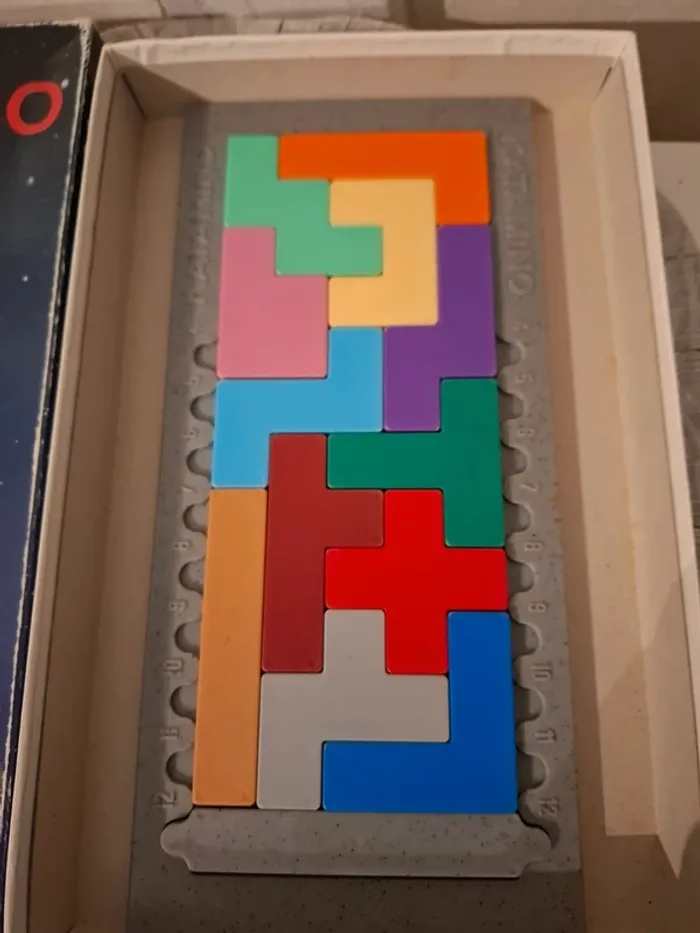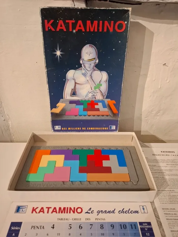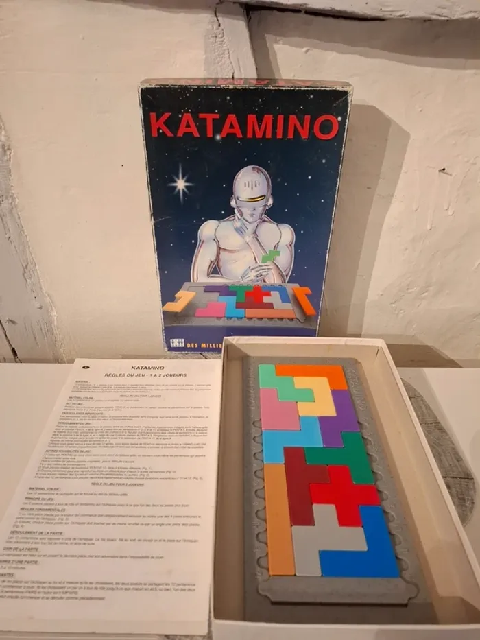 Katamino est au départ un casse-tête composé de 12 pentaminos (figures géométriques composées de 5 carrés de taille identique).