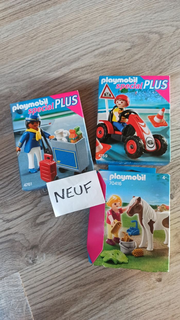 Playmobil neuf karting enfant cheval hôtesse de l'air