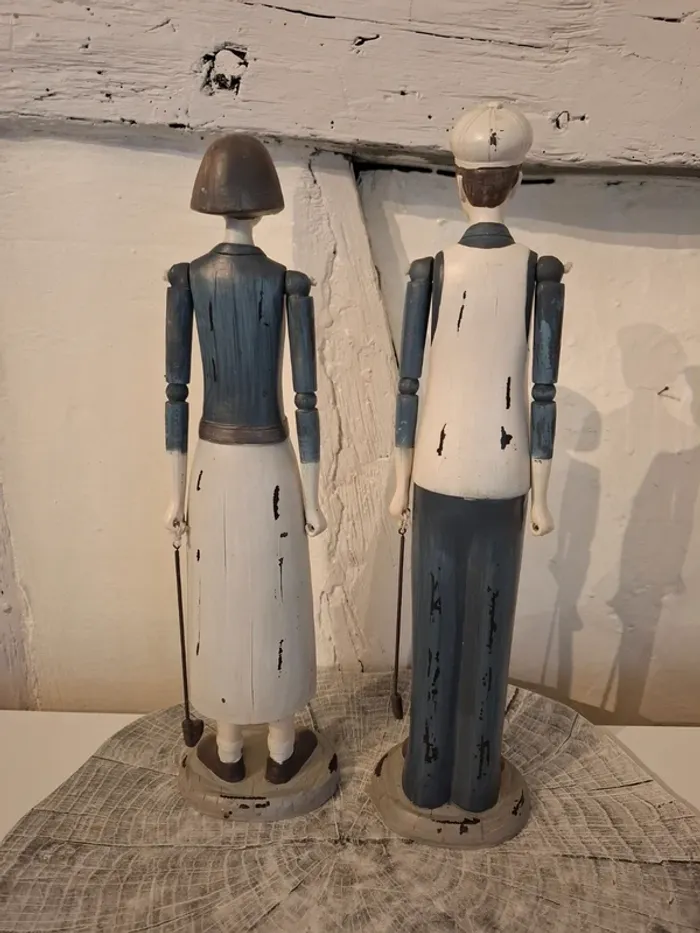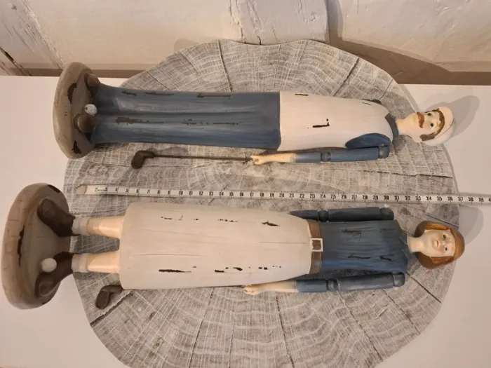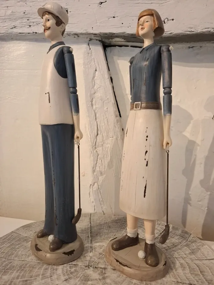 Statuettes au style retro articulées représentant un homme et une femme jouant au Golf Dimension : 36 cm de hauteur