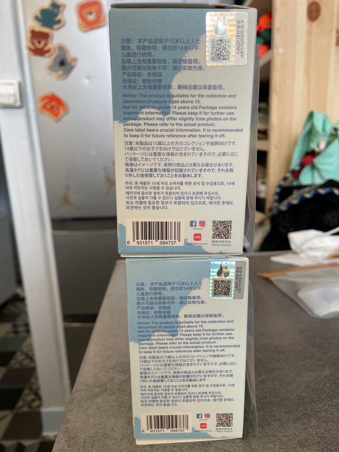 To authenticate: scratch the silver area of the QR code and enter the 4-digit code on the POPMART website. Labubu also has a tag with a QR code for authentication on the POPMART website.
