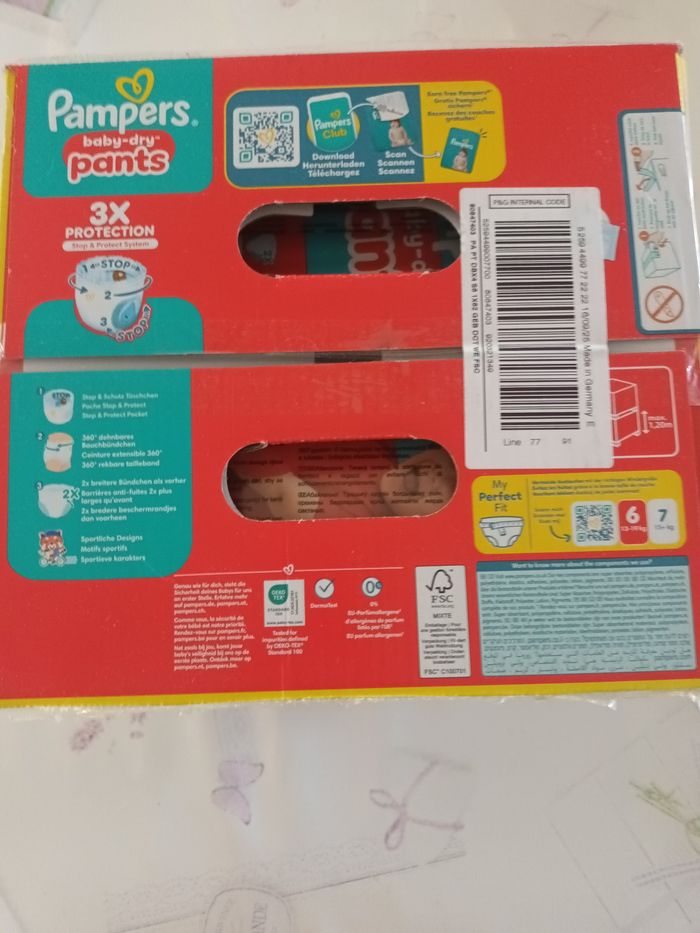 Carton de 62 couches Neuf Pampers baby dry pants Taille 6