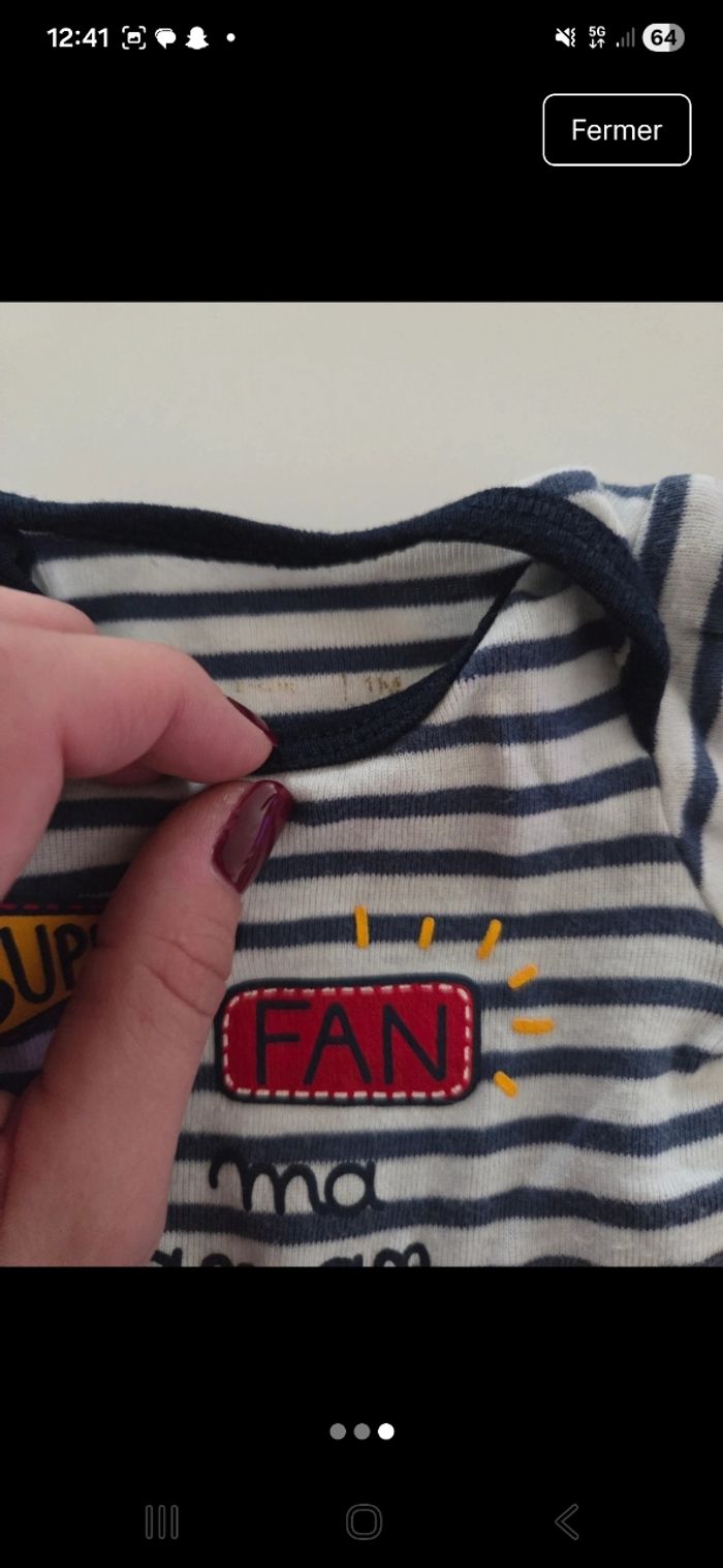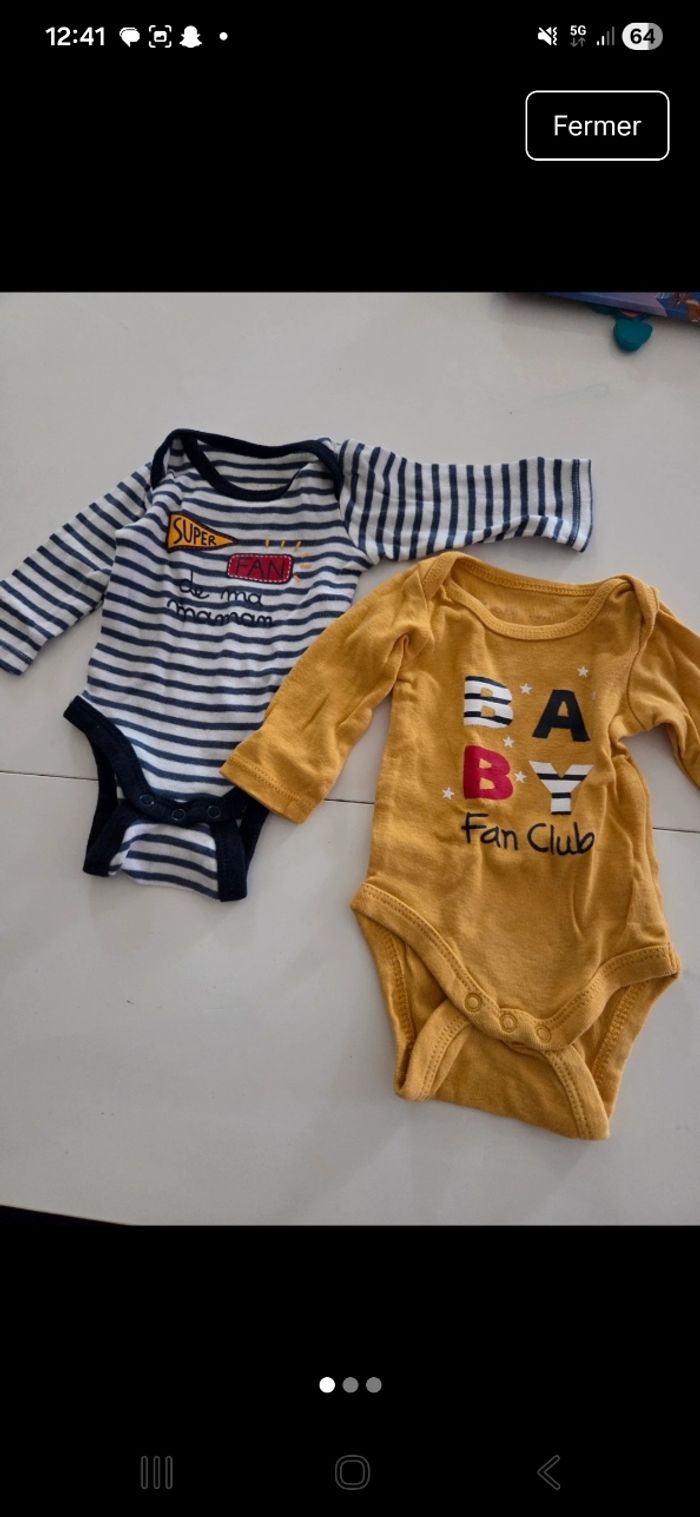 Lot de 2 bodies manches longues de la marque Gémo taille 1 mois en très bon état