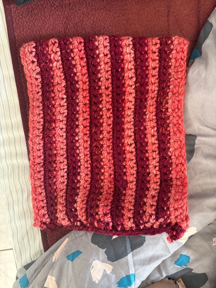 Je mets en vente ce tour de cours qui a été tricoté par voisine, je ne supporte pas et j’aime pas trop la couleur sinon il est propre, il a toujours été protégé dans des boites en plastique.