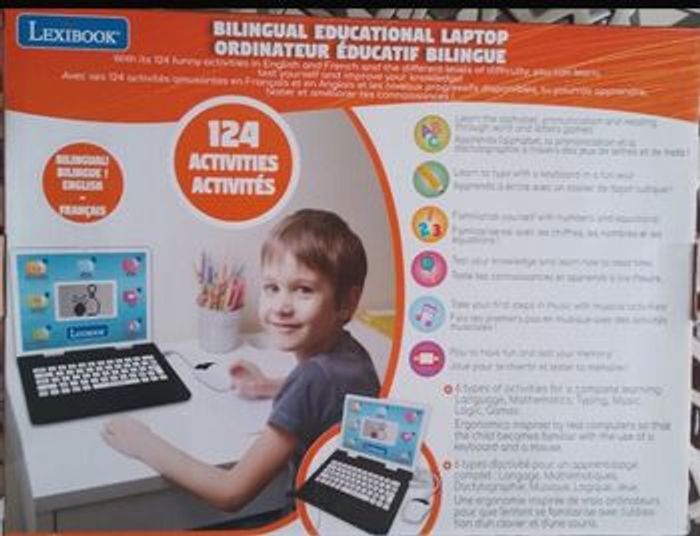 Ordinateur éducatif pour enfants de la marque Lexibook, conçu pour apprendre tout en s’amusant : lettres, chiffres, mathématiques et autres activités ludiques. ✅ Caractéristiques : • Apprentissage interactif : maths, lettres, jeux éducatifs • Interface adaptée aux enfants • Couleur : (à préciser selon le modèle) • Idéal pour éveiller la curiosité et l’apprentissage chez les plus jeunes 📦 État : Neuf, jamais utilisé 🎁 Idéal comme cadeau d’anniversaire ou de Noël pour un enfant