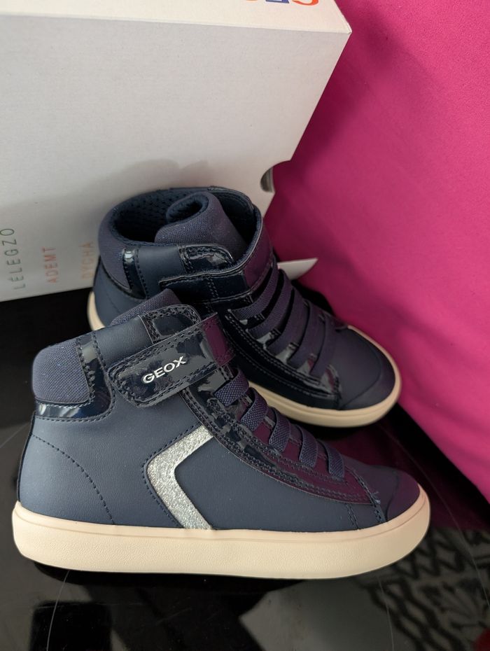 Je vends cette paire de chaussures montantes pour fille de la marque Geox, en taille 30 Neuf avec étiquette dans son emballage d'origine. Souples, semelle souple, mesures sur la photo pour donner des idées. - Type de produit : Baskets montantes - Univers : Enfant - Marque : Geox - Pointure : 30 - Couleur : Marine / argenté - Matière : Cuir synthétique - Fermeture : Scratch et lacets élastiques. N'hésitez pas à me contacter pour plus d'informations ! Disponible encore les mêmes en tailles plus grandes. À demander,si besoin.