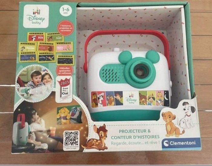 Un conteur d’histoires innovant, avec un projecteur pour captiver l’enfant pendant l’écoute avec les images des personnages classiques de Disney.