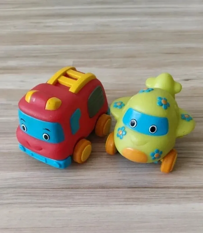 Push & Go - avion et voiture de pompier. Véhicules á friction, très facile à utiliser pour les tout petits. Dès 12 mois.