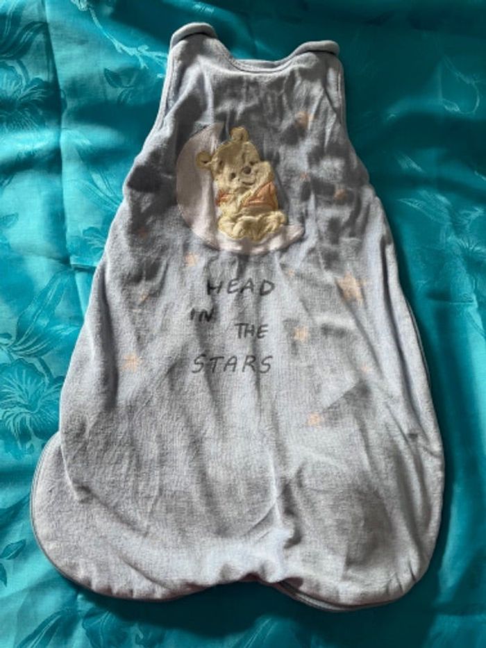 Turbulette/gigoteuse en très bon état, en taille 0-6 mois de la marque Disney Baby avec Winnie l’ourson (Winnie The Pooh ) et la mention « Head in the stars » / la tête dans les étoiles
