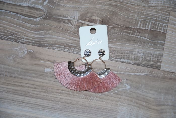 neuve jamais portées paire de boucles d'oreilles fantaisie est idéale pour rehausser votre tenue du quotidien. Ces boucles d'oreilles arborent une monture couleur or rose et des franges roses. Sublimez une tenue décontractée avec ce bijou incontournable ! Composition : Monture couleur or rose Couleur : Or rose, rose Entretien : Évitez le contact direct avec l'eau, les crèmes hydratantes et les parfums. Poids : 15 g