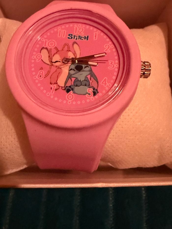 Montre à quartz Stitch Neuve, livrée dans une boîte à l’effigie de Stitch et Angel. Bracelet de la montre en silicone. Longueur réglable. Couleur rose bonbon. 📦 Envoi soigné avec