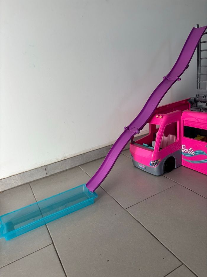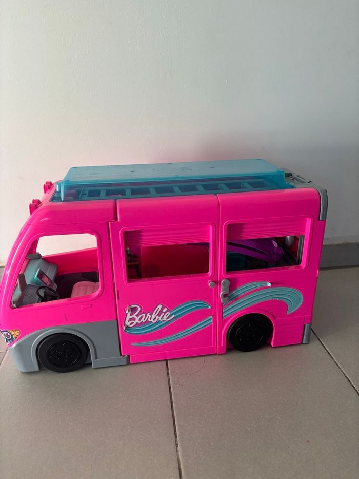 Je vends ce camping car Barbie avec la piscine qui se déplie.