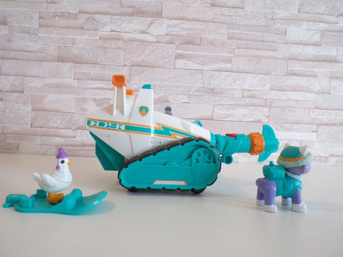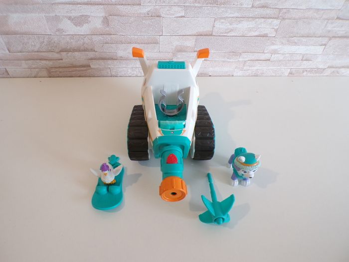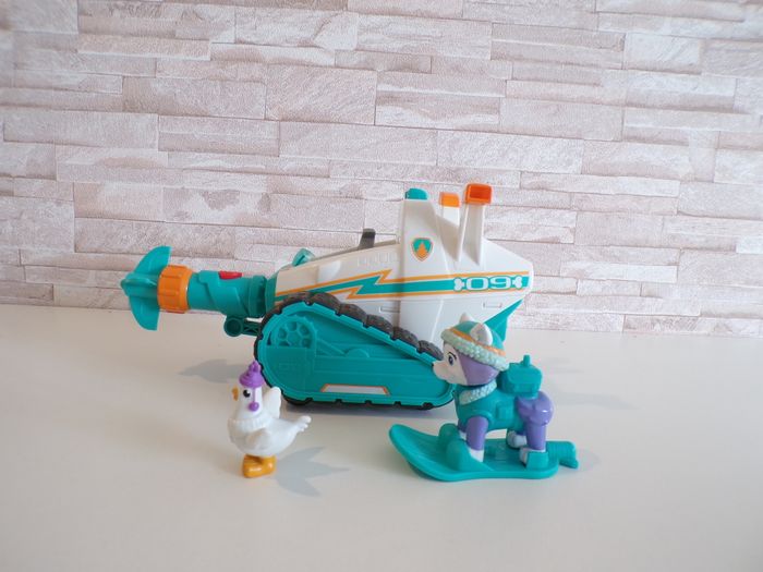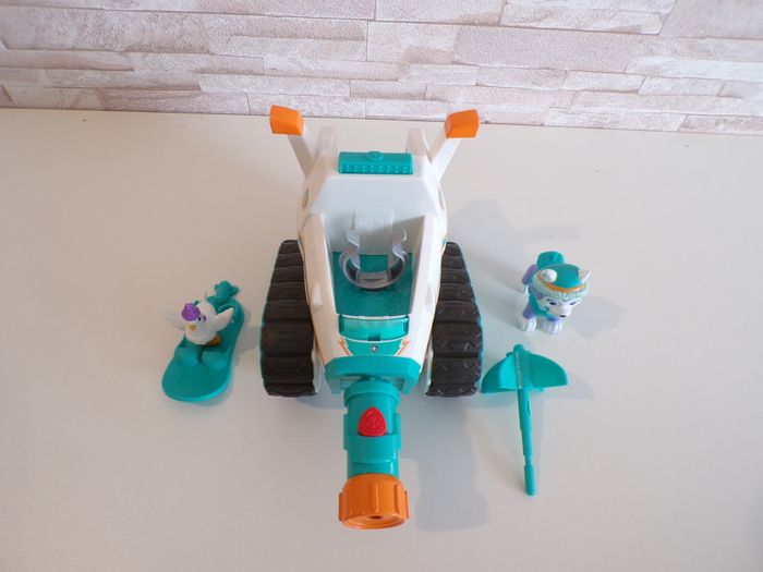 Moto neige avec grappin - Everest - Paw Patrol - Pat Patrouille, en très bon état et complet avec la poule, le skateboard. Tout fonctionne parfaitement.