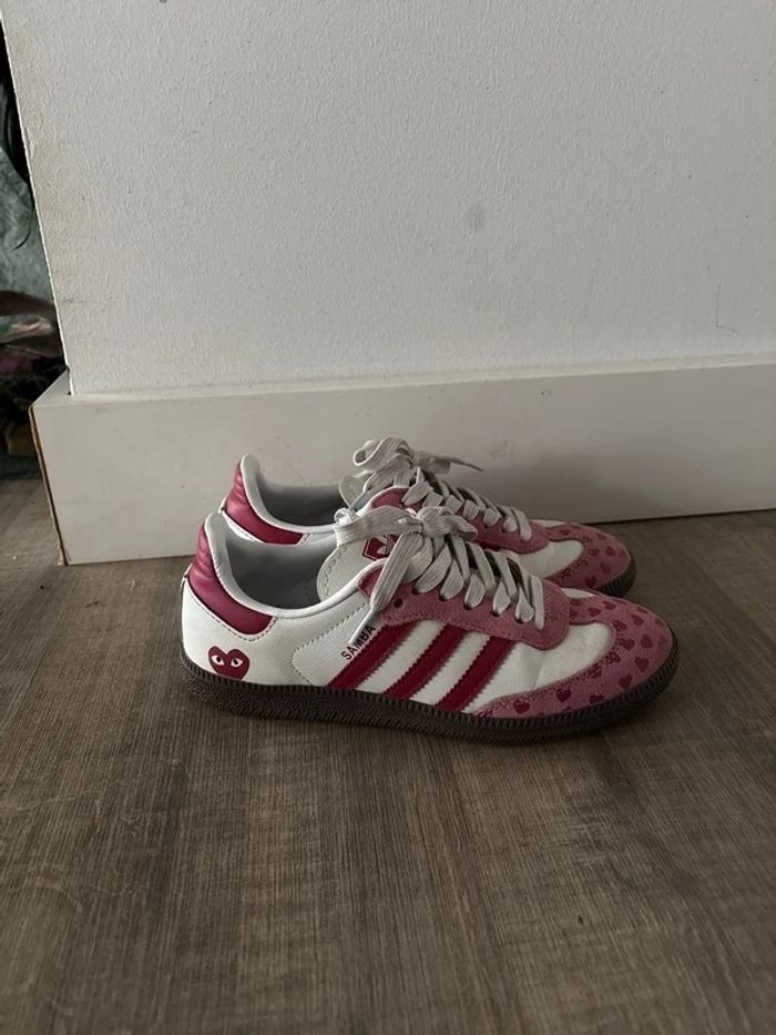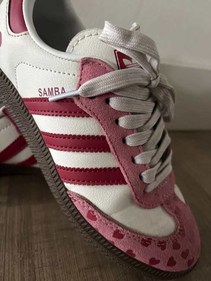 Article spécial ! Adidas Samba, édition spéciale Saint-Valentin blanche et rose.