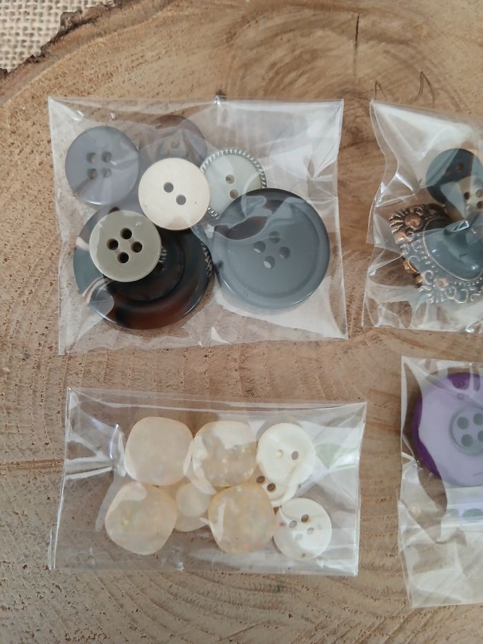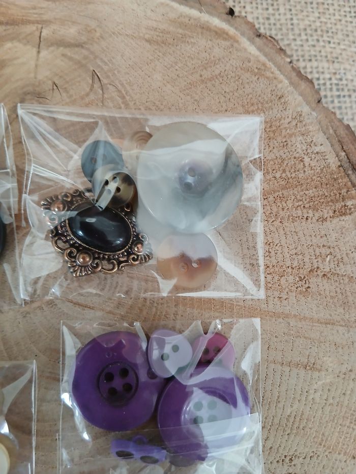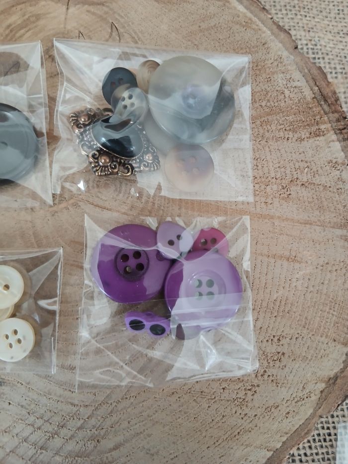Lot de 4 sachets de boutons. D'autres tissus ruban boutons perles et accessoires biais ect... de dispo ds mon dressing n'hésitez pas à jeter un coup d'œil ou à me demander.
