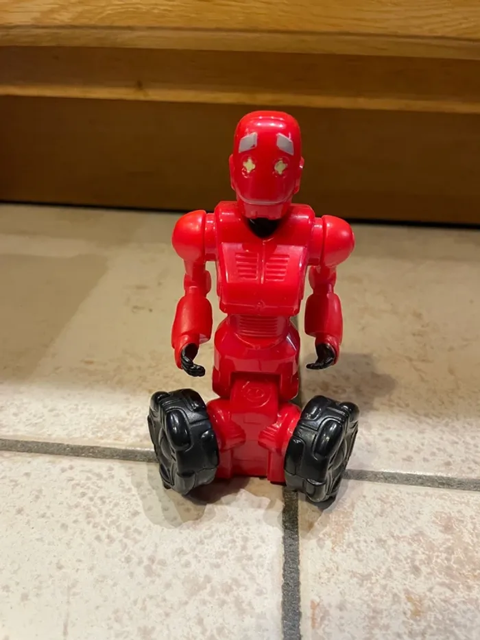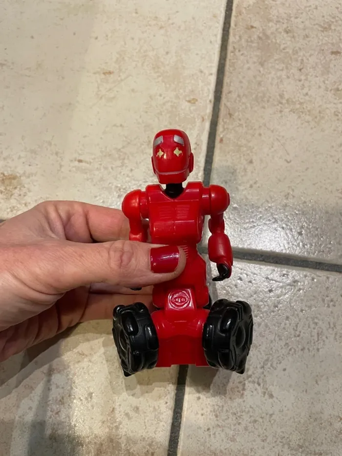Lorsqu'on le remonte avec la molette située dans son dos il bouge les bras par contre je ne sais pas si il était censé rouler à l'origine? Ca entraine bien les roues mais il ne roule pas.