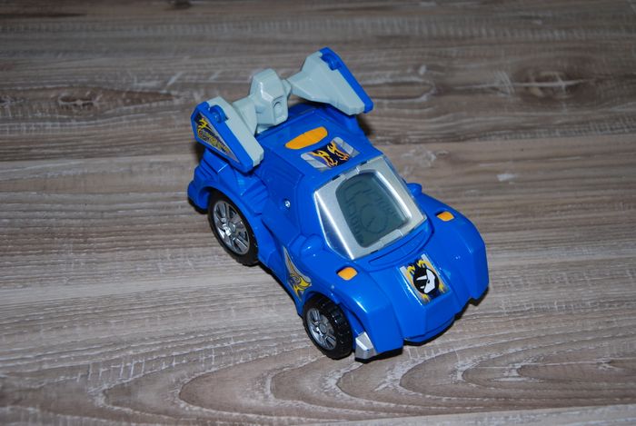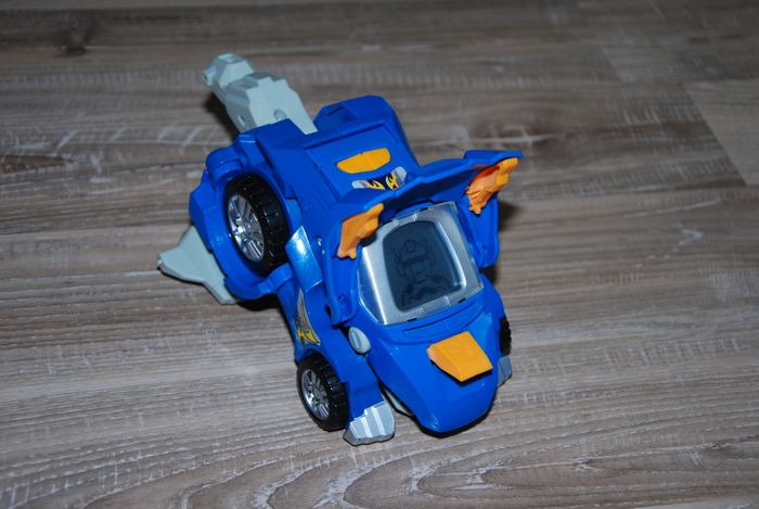 en très bon état fonctionne parfaitement voix française se transforme en Triceratops! sons à chaque transformation. (Le triceratops est fort et généreux). Différents affichages sur l’écran lcd (expressions du dino, pilote de course…). Age : 3 - 9 ans