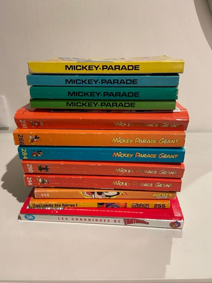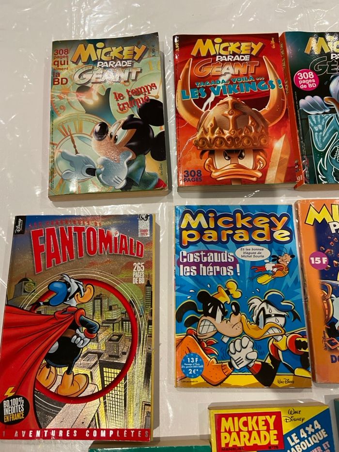 À vendre : plusieurs numéros de Mickey Parade, Mickey Parade Géant et Les Chroniques de Fantomiald. Tous en bon état, parfaits pour collectionneurs ou jeunes lecteurs.
