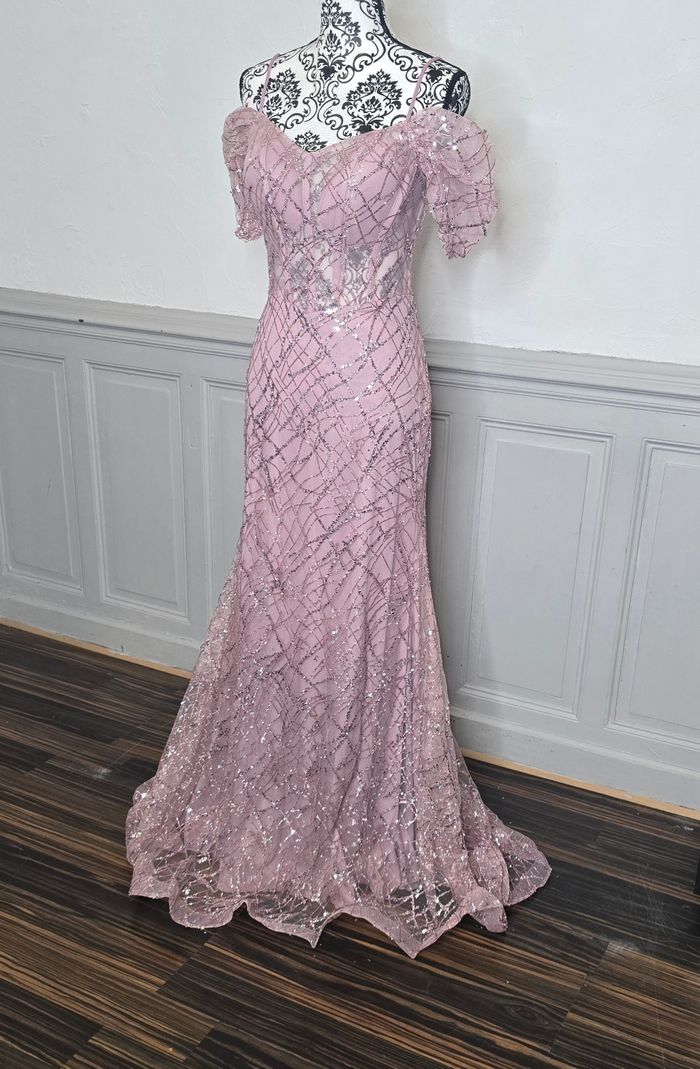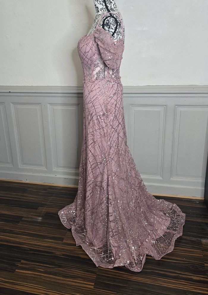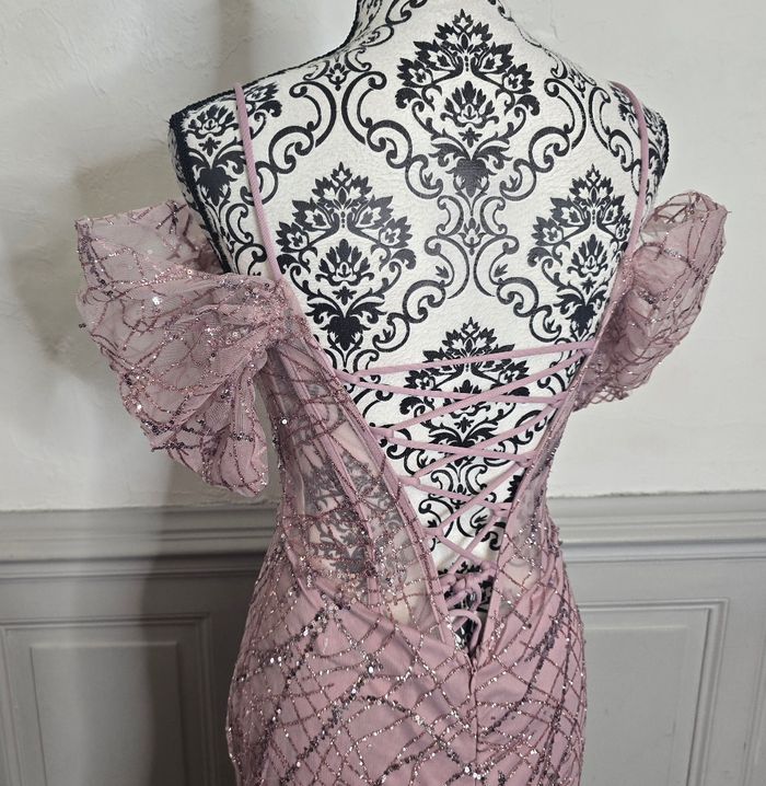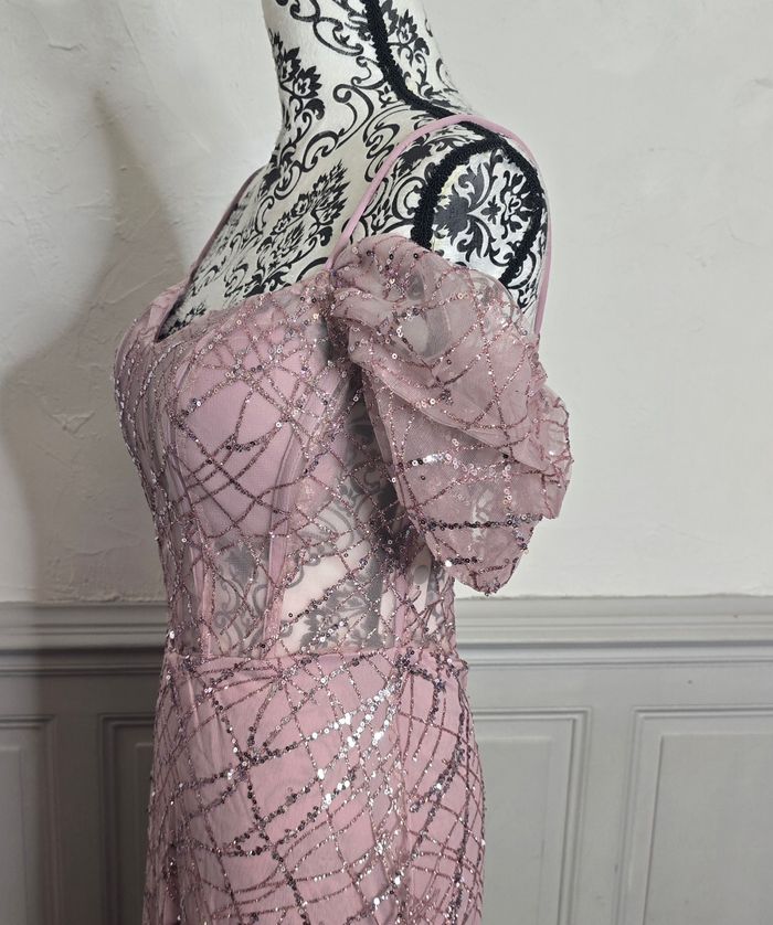 Robe sirene vieux rose pailleté manche tombante taille 40 L