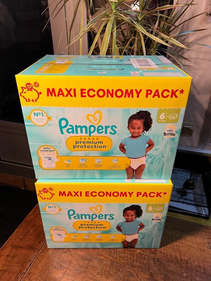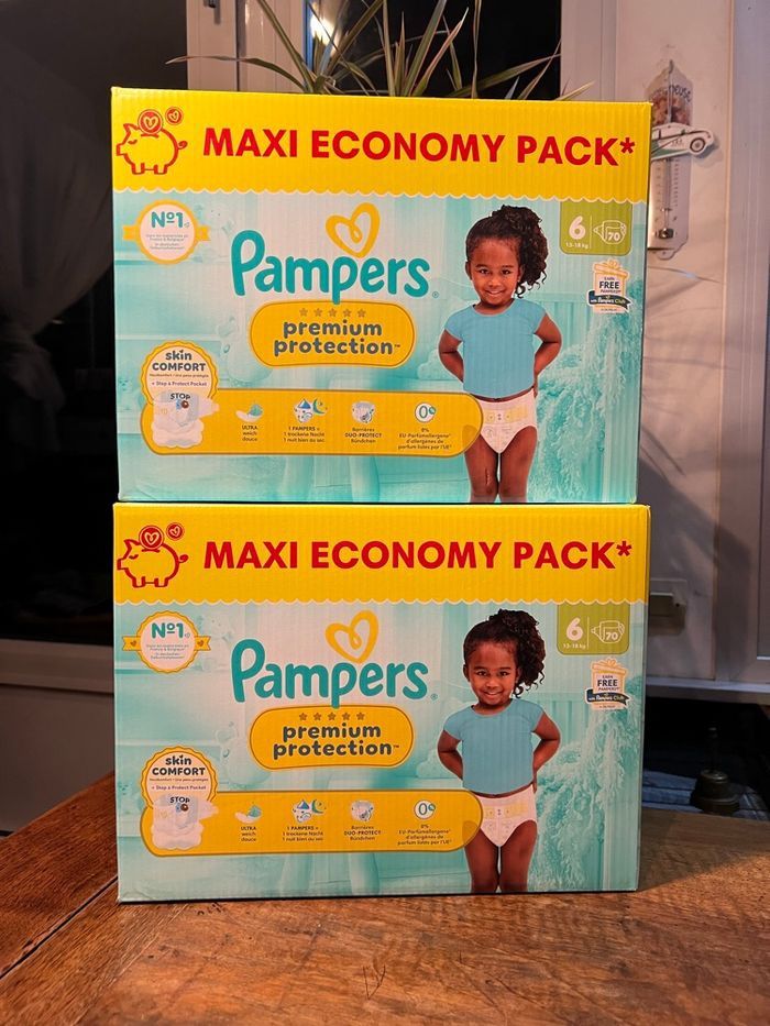 Code -15€ : Jusqu’au : Lot : 2 cartons neufs. Variété : Pampers Premium protection en COUCHE. Taille 6 : Bébé 13 - 18 kg Quantité : 140 (2*70) COUCHES. #couche #pampers #couchepampers #coucheharmonie #harmonie #premiumprotection #babydry #couchetaille6