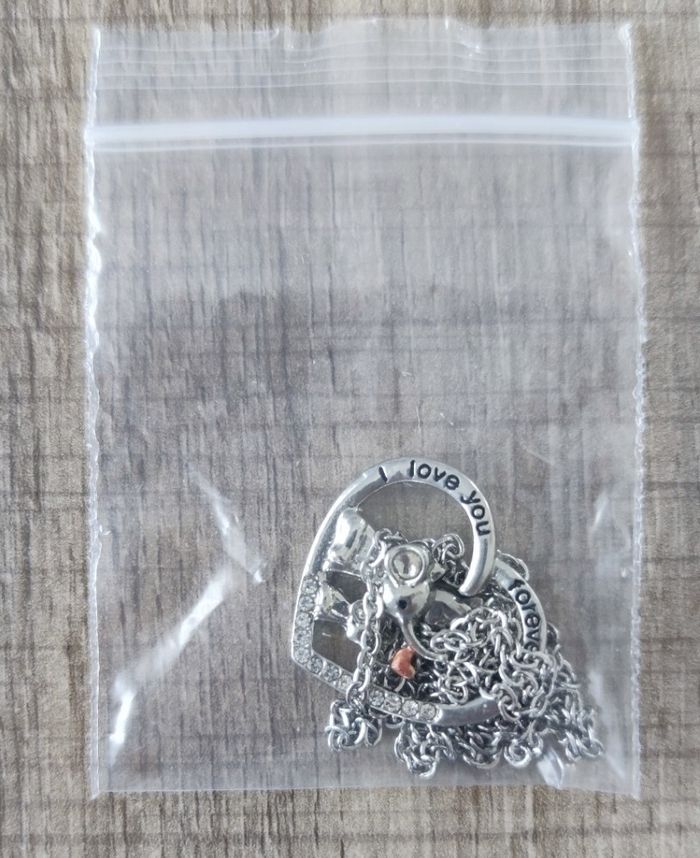 Pendentif cœur éléphants “I love you forever” + chaîne 48 cm – femme – neuf - photo numéro 4