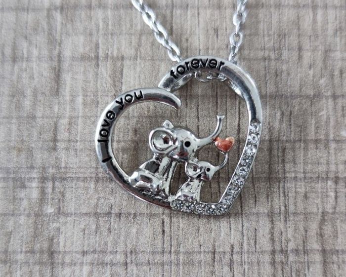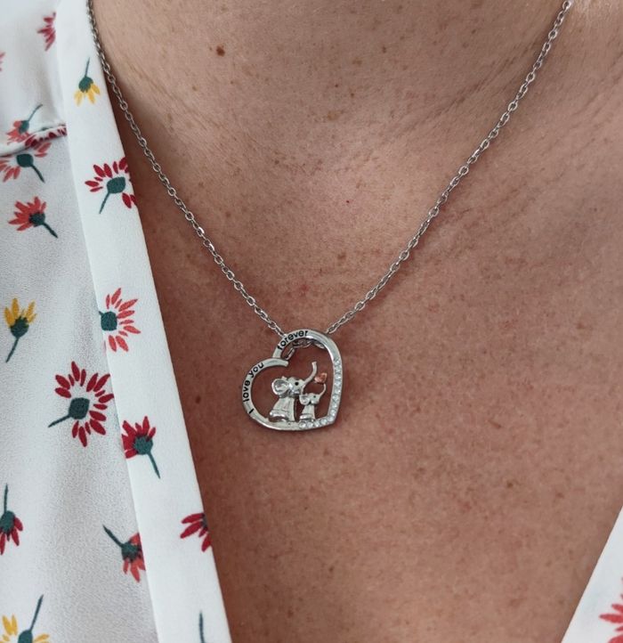 Pendentif cœur éléphants “I love you forever” + chaîne 48 cm – femme – neuf - photo numéro 1