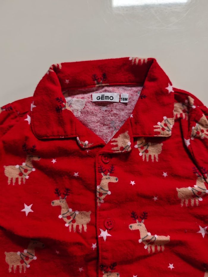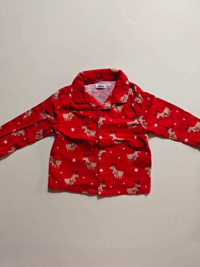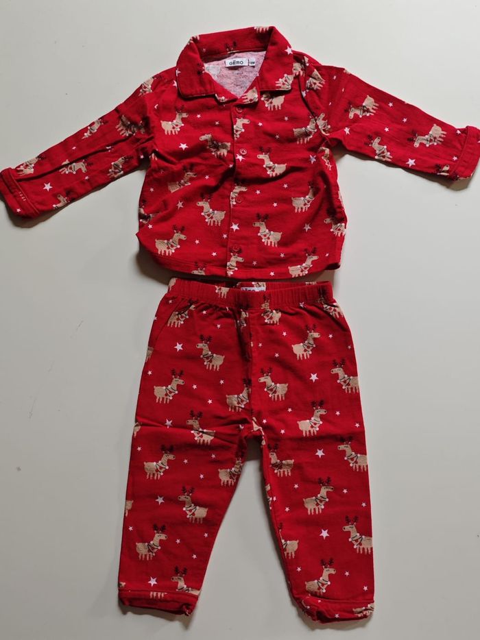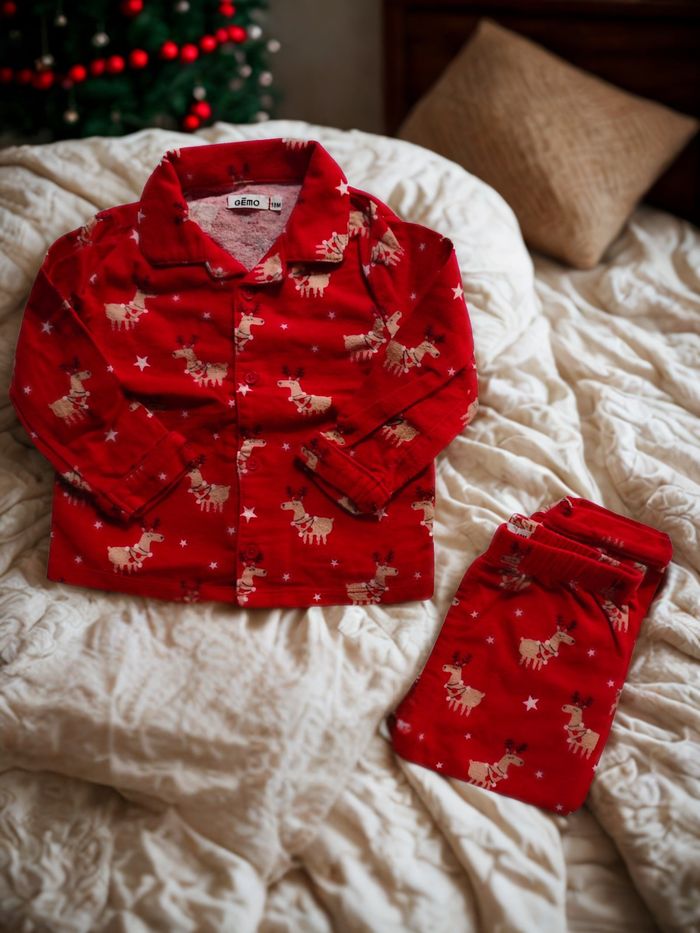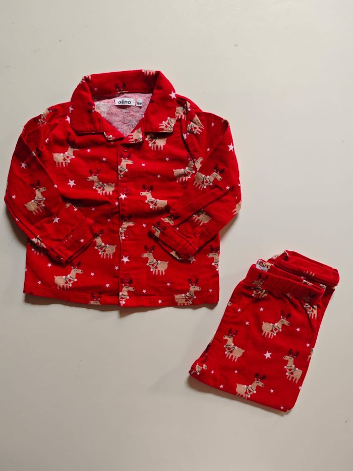 🎄Pyjama rouge 2 pièces en Coton (100%) légèrement velouté. Motifs Rennes de Noël. Gémo. Mixte pour fille ou garçon