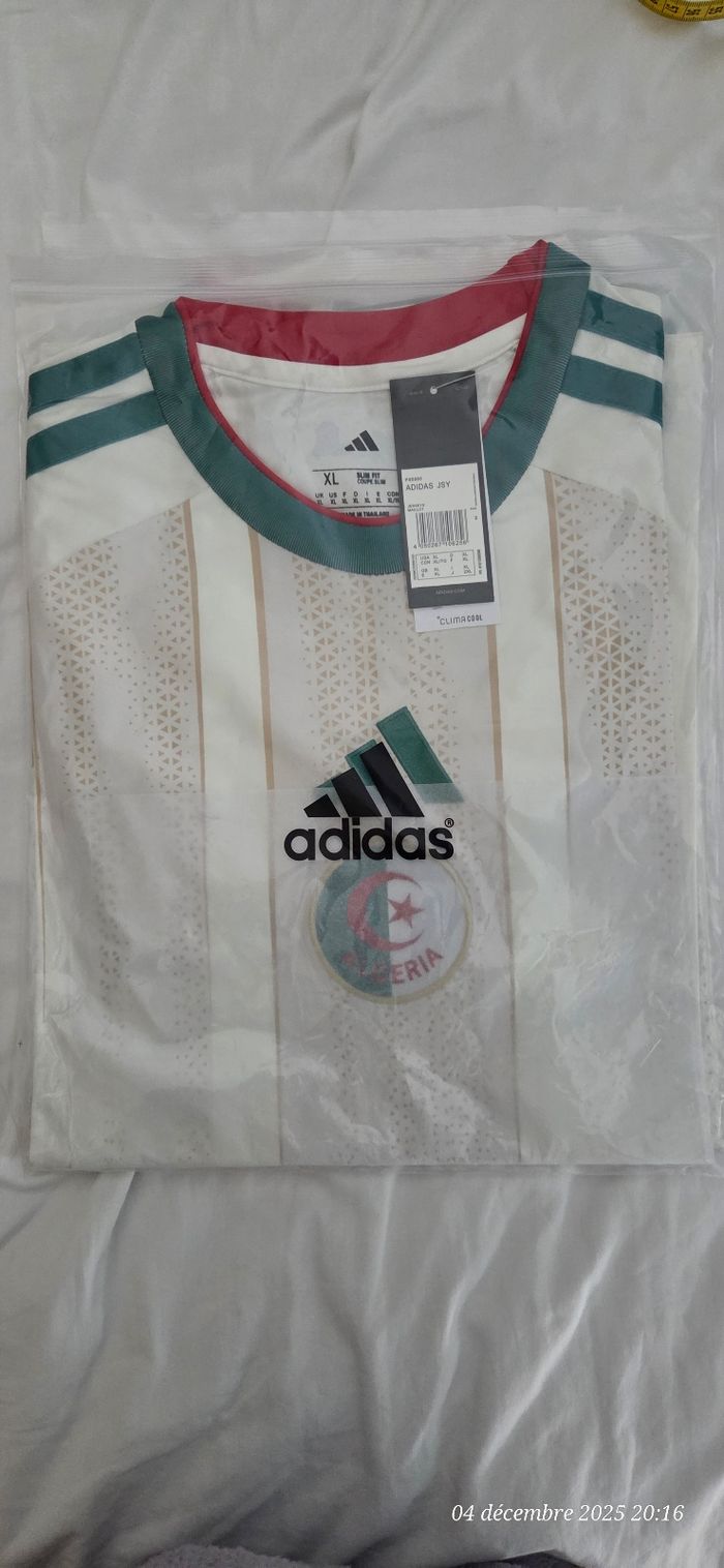 Maillot Algérie 26 Domicile Superbe maillot domicile de l’équipe d’Algérie 🇩🇿✨ saison 2025/2026, signé Adidas. Modèle neuf, tags présents. Design premium crème, bandes vertes iconiques et touches rouges. Le drapeau algérien fait son grand retour au centre du maillot, entouré de motifs traditionnels subtils pour un rendu moderne et authentique. Tissu respirant ClimaCool, idéal pour l’entraînement, le sport ou la collection. 🚚 Expédition rapide et soignée sous 24h max ✨ 🌟 Points forts • Modèle 25/26 officiel • Drapeau algérien centré • Motifs traditionnels ton sur ton • Technologie ClimaCool respirante • Adidas performance – coupe sportive • Idéal CAN 2025 & Mondial 2026 🧵 État Neuf avec étiquette.